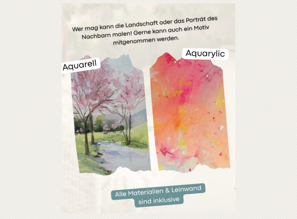 Die Events in den Restaurants sind für Erwachsene. Monatlich auch nachmittags als Family Event im Café, für Kids ab 5Jahre. In den Ferien können auch die Kids ab 12J. mit ins Restaurant. Motive werden innerhalb unserer WhatsApp Gruppe mit über 250 TeilnehmerInnen abgestimmt.