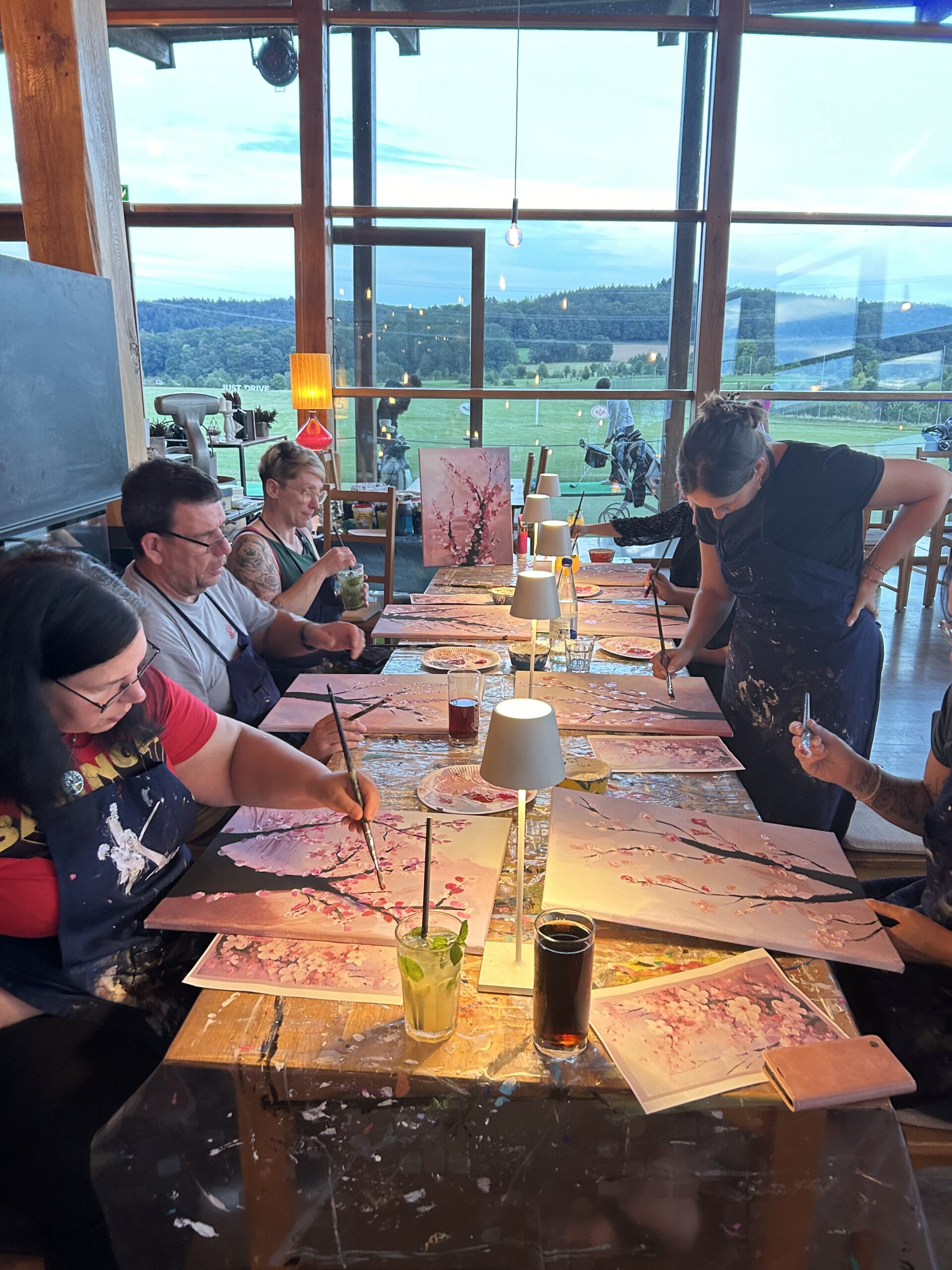 Während dem Malen wird auch lecker gegessen. Am Ende des Abends kann jeder sein fertiges Kunstwerk mit nach Hause nehmen.